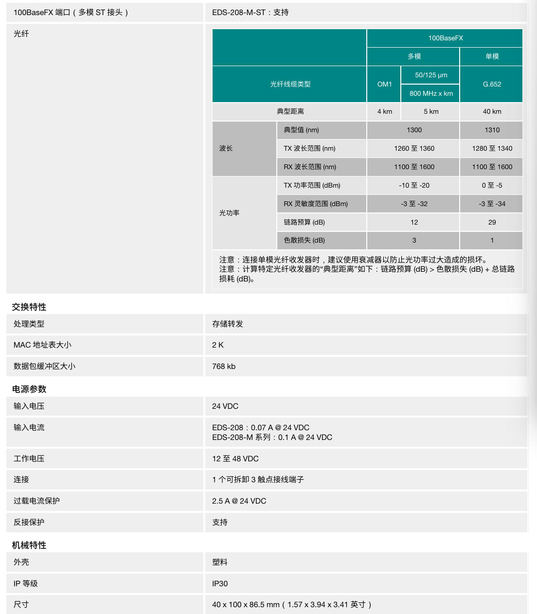 EDS-208 系列配备 IEEE 802.3/802.3u/802.3x、10/100M、全/半双工、MDVMDIX 自适应 RJ45 端口。EDS-208 系列支持 -10 至 60°℃ 工作温度,坚固耐用,适用于任何严苛的工业环境。此系列交换机可以轻松安装在导轨和配电箱上。导轨式安装、宽温,以及带 LED 指示灯的 IP30 外壳,使即插即用的 EDS-208 交换机可靠和易于使用。