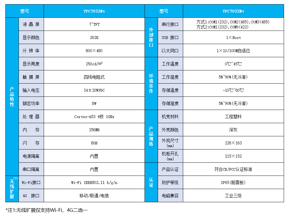 TPC7032Nt,是以ARM多核CPU为核心、主频1GHz的智能物联网触摸屏,该产品设计采用7英寸TFT液晶显示屏,分辨率800*480,四线电阻式触摸屏,同时还预装了McgsPro组态软件(运行版)。