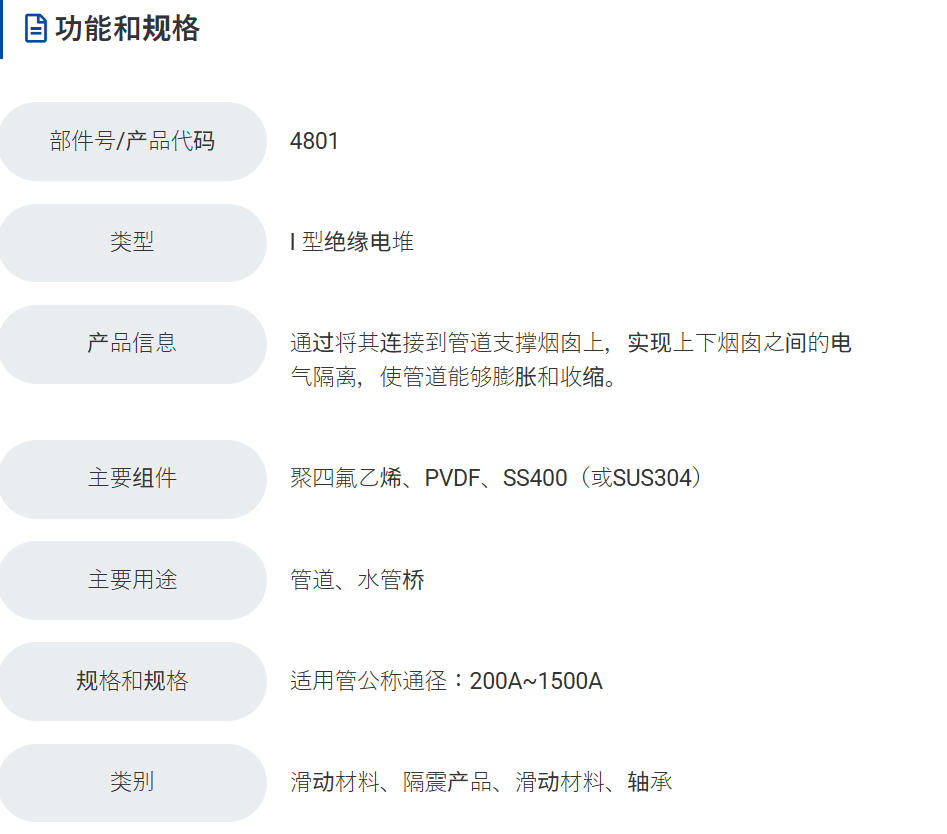 PILLAR 氟金™系统 I 型绝缘电堆4801