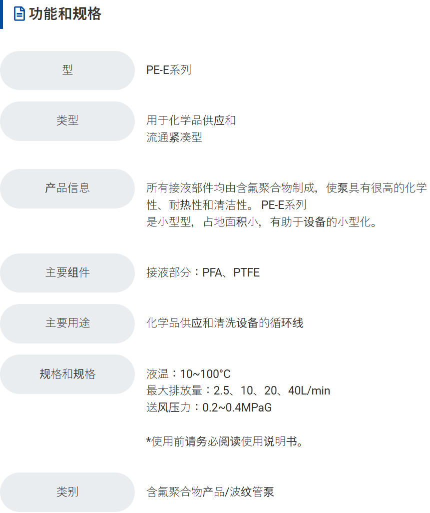 PILLARSperabeloze ™ 泵,PE-E系列