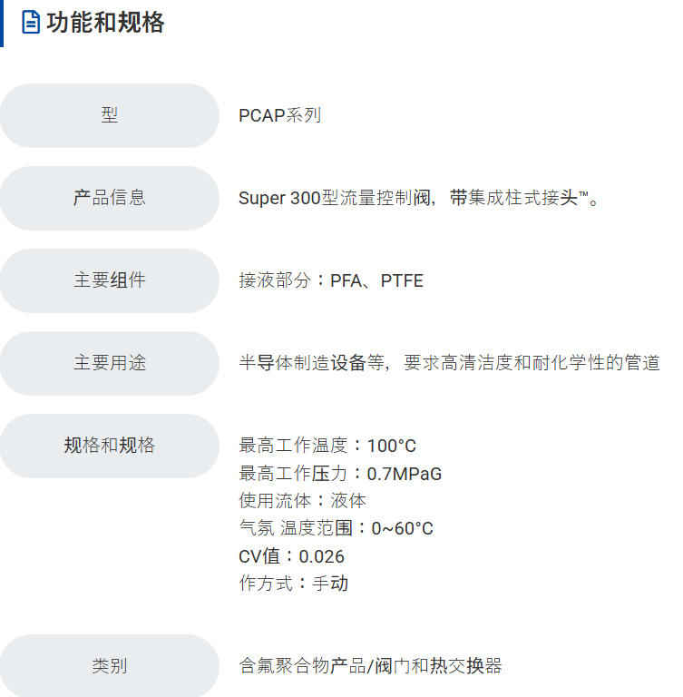 本页信息为日本皮拉中国区综合服务商为您提供的“PILLAR吡咯氟龙™流量控制阀,PCAP系列”产品信息,如您想了解更多关于“PILLAR吡咯氟龙™流量控制阀,PCAP系列”价格、型号、厂家,请联系厂家,或给厂家留言。