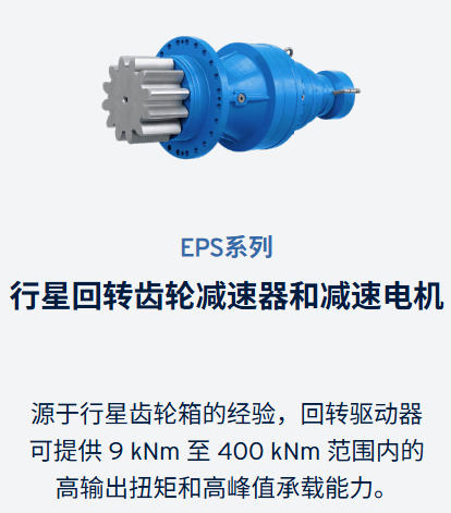 源于行星齿轮箱的经验,回转驱动器可提供 9 kNm 至 400 kNm 范围内的高输出扭矩和高峰值承载能力。