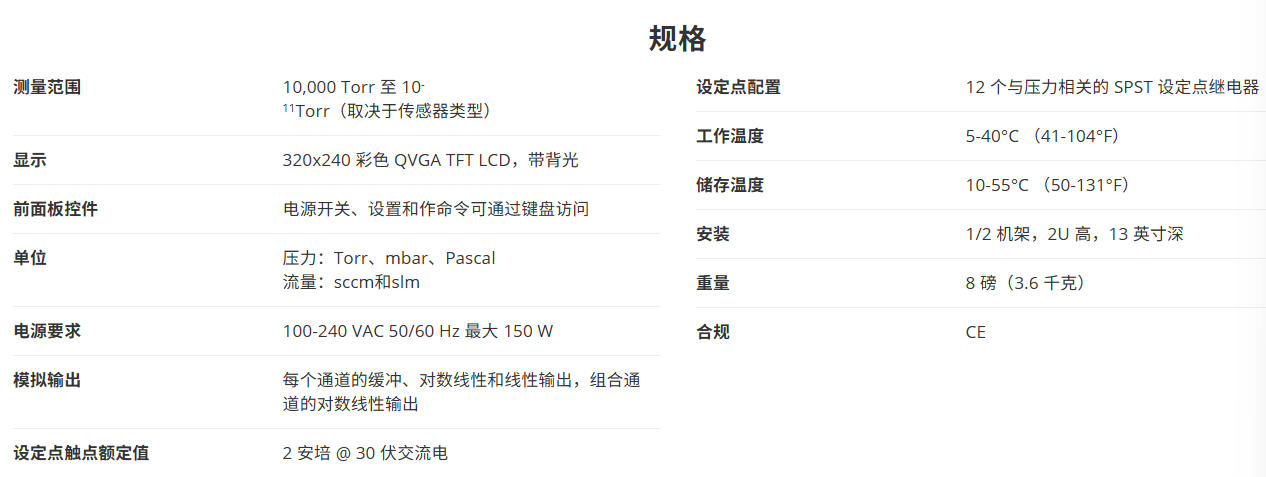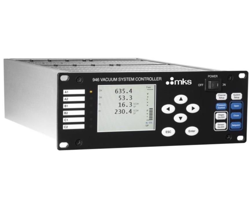 946 是一款多功能半机架真空计测量和控制系统。它为多达六个不同的真空计和/或质量流量控制器提供电源和同步读数,并具有控制压力的选项。这款高度灵活的真空系统控制器支持多种传感器技术,包括 Baratron® 电容压力计、冷阴极、热阴极、标准皮拉尼和对流皮拉尼传感器,测量范围从超高真空到高于大气压。