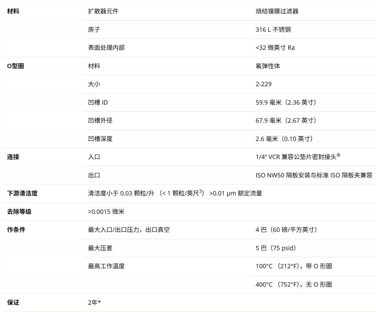 Entegris Chambergard™ FV50D XL 气体扩散器,CG2NDD050R2