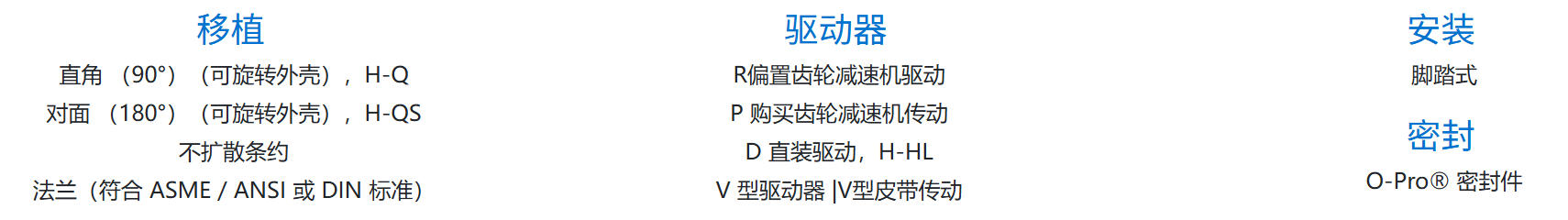 所有泵尺寸的对向端口。