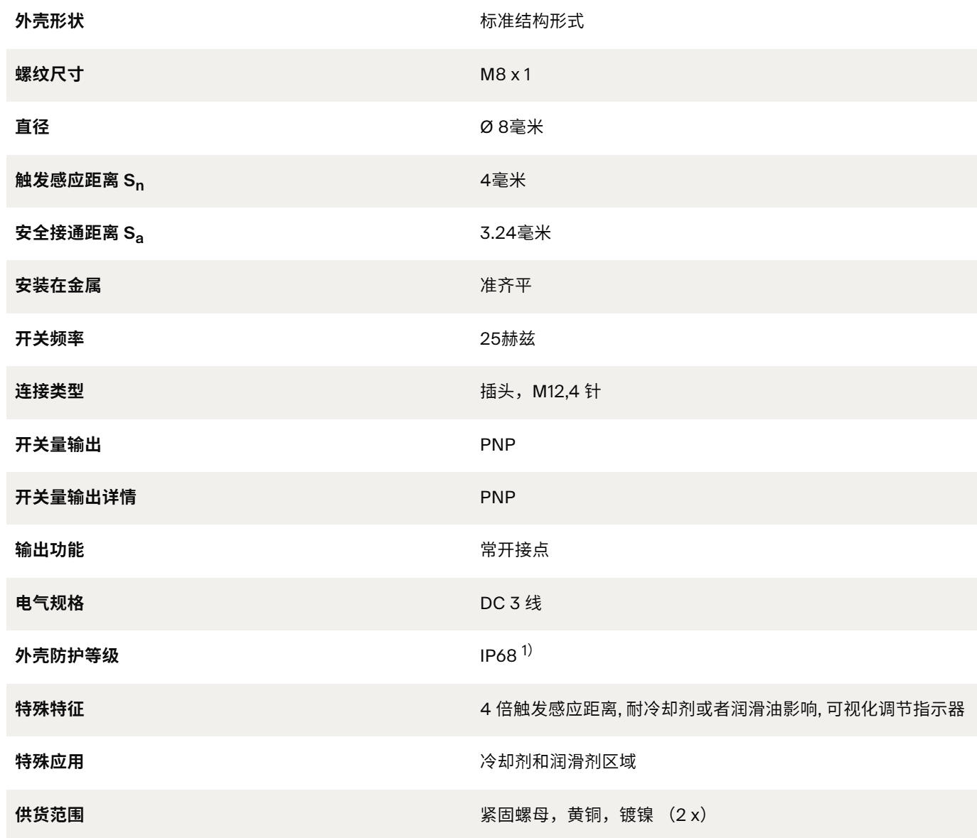 感应式接近传感器几乎在所有的工业领域中都以百万数计地投入使用。 它们无接触式地识别金属物体,具有使用寿命长、超坚固等特点。 借助现代化的专用集成电路技术,SICK传感器提供先进的准确度和可靠度。 无论是圆柱型的还是方形传感器,带有一个,两个或者三个触发触发感应距离,还是用于防爆区域或者恶劣环境的特殊传感器 - SICK一直提供特别适合于您要求的产品。 行业特定与个性化的自动化任务由此变得智能可靠。