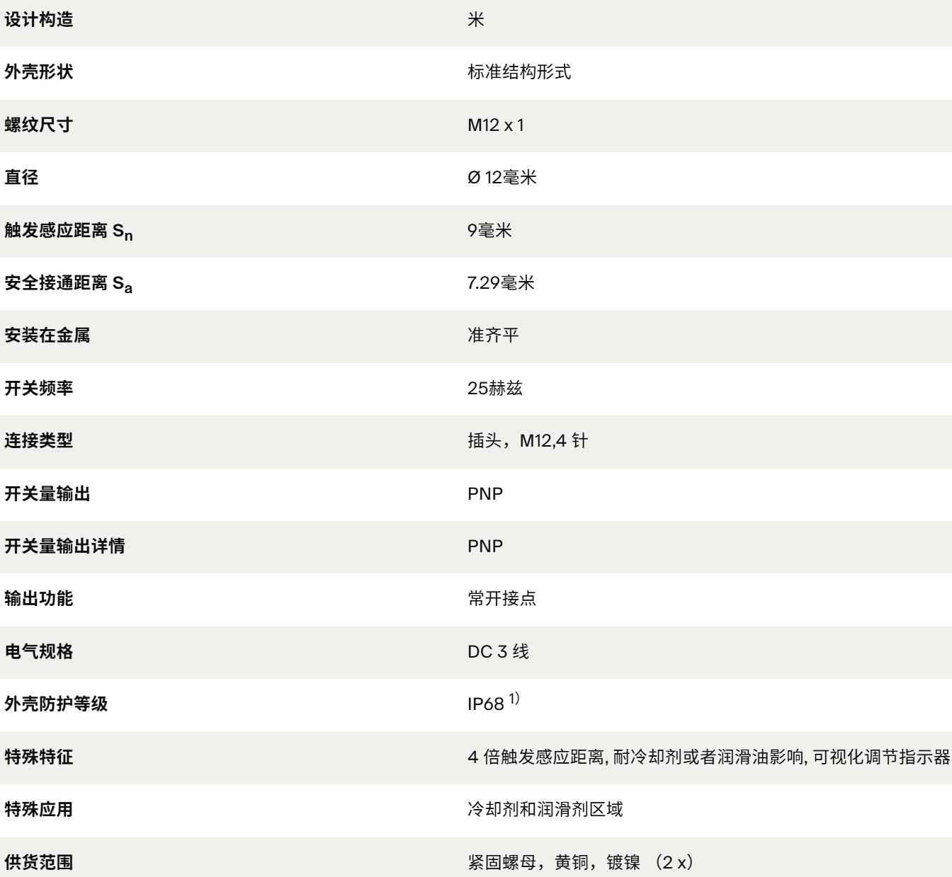 感应式接近传感器几乎在所有的工业领域中都以百万数计地投入使用。 它们无接触式地识别金属物体,具有使用寿命长、超坚固等特点。 借助现代化的专用集成电路技术,SICK传感器提供先进的准确度和可靠度。 无论是圆柱型的还是方形传感器,带有一个,两个或者三个触发触发感应距离,还是用于防爆区域或者恶劣环境的特殊传感器 - SICK一直提供特别适合于您要求的产品。 行业特定与个性化的自动化任务由此变得智能可靠。