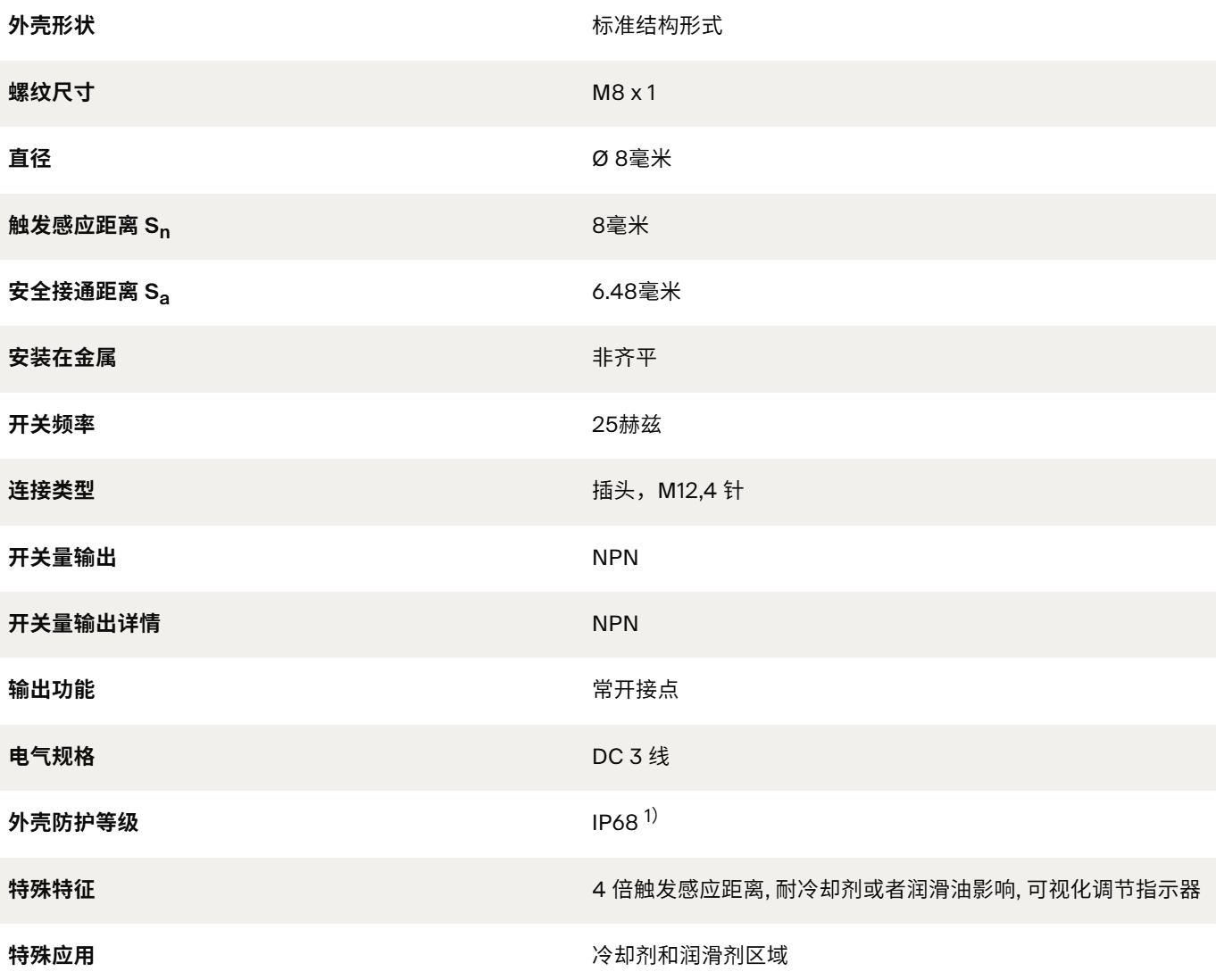 感应式接近传感器几乎在所有的工业领域中都以百万数计地投入使用。 它们无接触式地识别金属物体,具有使用寿命长、超坚固等特点。 借助现代化的专用集成电路技术,SICK传感器提供先进的准确度和可靠度。 无论是圆柱型的还是方形传感器,带有一个,两个或者三个触发触发感应距离,还是用于防爆区域或者恶劣环境的特殊传感器 - SICK一直提供特别适合于您要求的产品。 行业特定与个性化的自动化任务由此变得智能可靠。