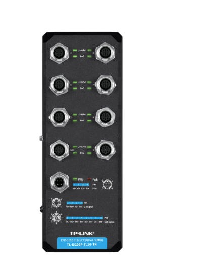 提供7个10/100M自适应M12接口(4pin,D-code,母头)