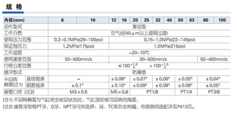 注:钢珠直线轴承:适用于气缸作推举动作,或要求高精度和高承载能力的场合,特别适用于要求低磨擦运动的场合;