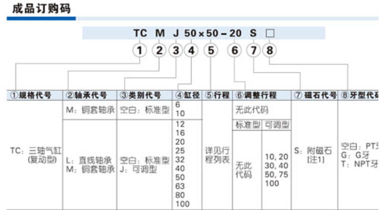 亚德客TCL、TCM气缸,TCM50*50-20S