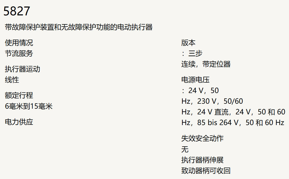 samson萨姆森,5827带故障保护装置和无故障保护功能的电动执行器
