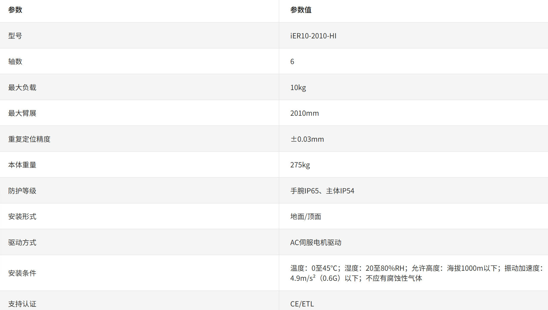 埃斯顿机器人,iER10-2010-HI,负载10公斤,臂展2010mm