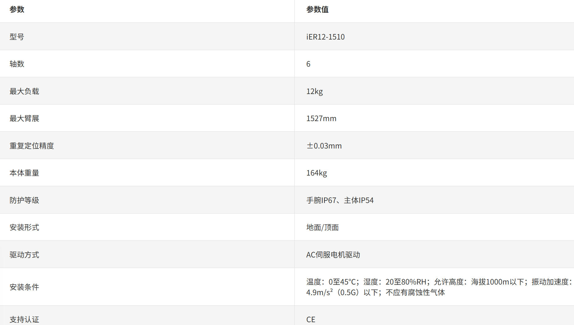 埃斯顿机器人,iiER12-1510,负载12公斤,臂展1527mm