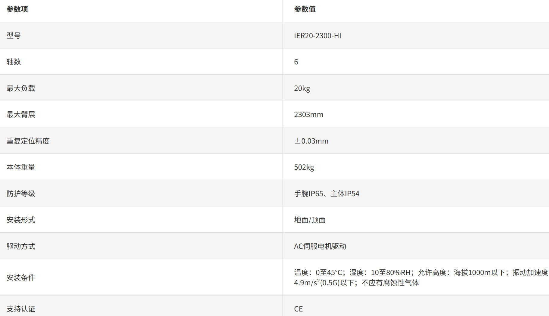 埃斯顿机器人,iER20-2300-HI,负载20公斤,臂展2303mm